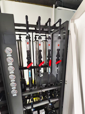 該系統配備600L大型儲水罐,采用全封閉循環設計,確保24小時持續供水。智能控制系統實時監測電導率、電阻率等關鍵指標,具備自動消毒功能。滲源工程師團隊還根據醫院用水特點,優化了管網布局,確保各用水點水質達標。