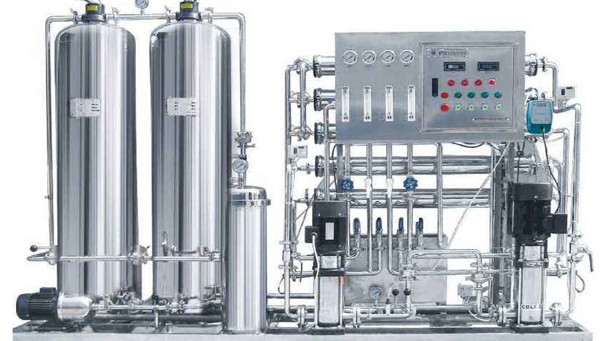原水→原水加壓泵→多介質(zhì)過(guò)濾器→活性炭過(guò)濾器→軟水器→精密過(guò)濾器→第一級(jí)反滲透 →PH調(diào)節(jié)→中間水箱→第二級(jí)反滲透(反滲透膜表面帶正電荷)→純化水箱→純水泵→微孔過(guò)濾器→用水點(diǎn)