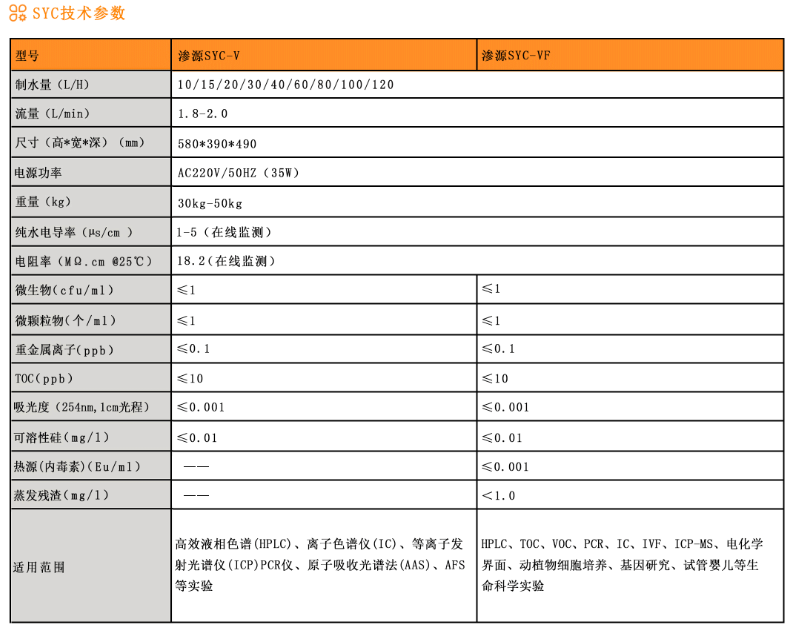 滲源SYC-V系列實驗室超純水機以純凈水、蒸餾水、二級R0水為進水源,適合國內大多數實驗室使用,能制取水質穩定在18.25MQ的超純水,也可以作為中央純水系統的超純水終端處理設備。