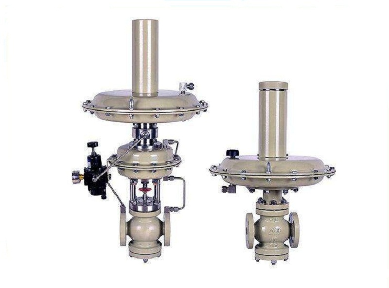 氮封裝置由供氮閥、 泄氮閥、 呼吸閥 組成,供氮閥由指揮器和主閥兩部分組成;泄氮閥由內反饋的壓開型微壓調節閥組成,通過氮封裝置精確控制。當儲罐進液閥開啟,向罐內添加物料時,液面上升,氣相部分容積減小,壓力升高,當罐內壓力升至高于泄氮閥壓力設定值時,泄氮閥打開,向外界釋放氮氣,使罐內壓力下降,降至泄氮閥壓力設定點時,自動關閉。當儲罐出液閥開啟,用戶放料時,液面下降,氣相部分容積增大,罐內壓力降低,供氮閥開啟,向儲罐內注入氮氣,使罐內壓力上升,升至供氮閥壓力設定點,自動關閉。