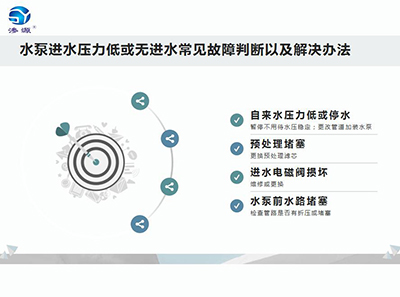 當(dāng)自來(lái)水停水或者水壓不夠使,超純水機(jī)的水泵無(wú)法獲得足夠的壓力,觸發(fā)低壓保護(hù)后會(huì)自動(dòng)停止。可通過(guò)增加水泵來(lái)保證進(jìn)水壓力。