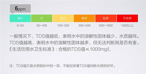 TDS值代的是值溶解性固體總量,它的數(shù)值表明了水中有多少毫克的溶解性固體,數(shù)值越高代表著其雜質(zhì)含量越多,有機(jī)物和無機(jī)物含量也就越高。